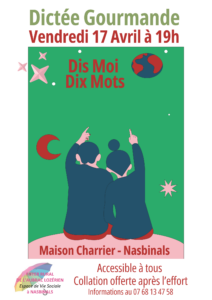 | 15 | 16 | 17Dictée gourmandeDictée gourmandeHeure/min: 19h00 - 21h00