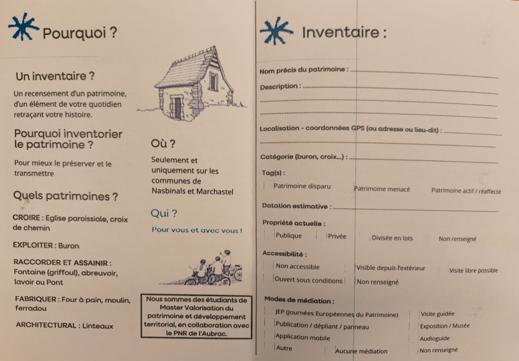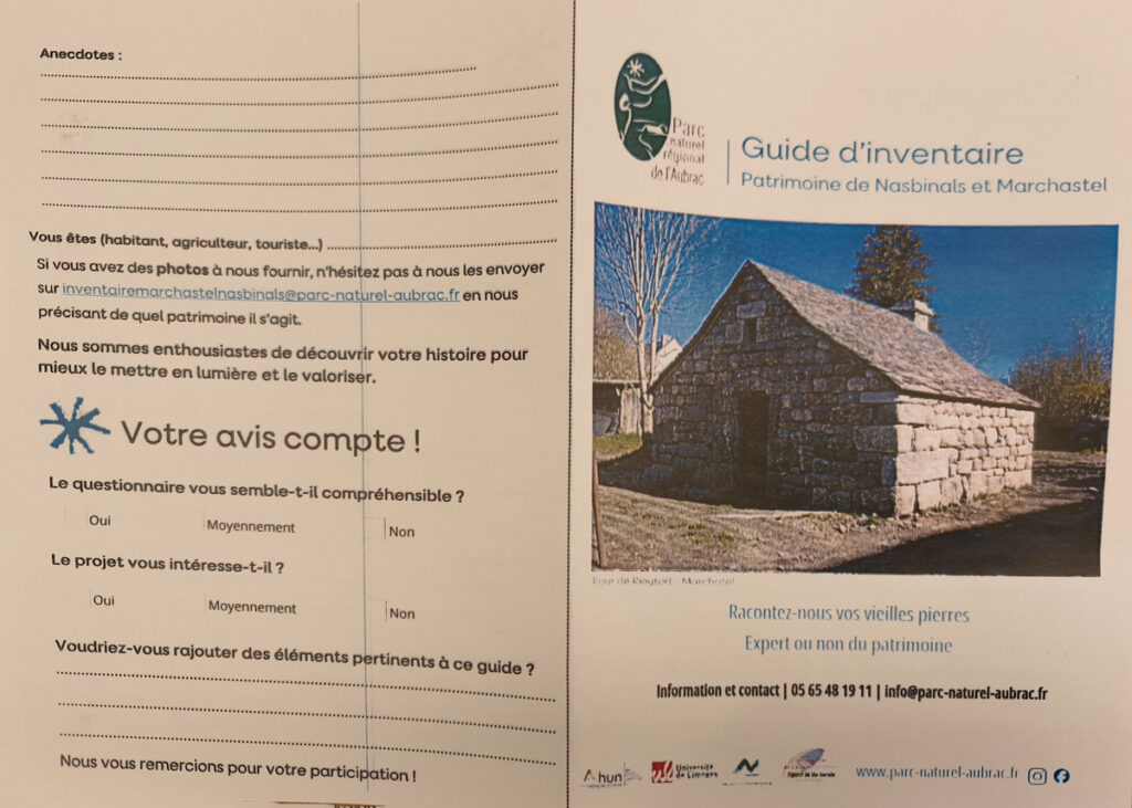 Des étudiants en architecture, en partenariat avec le Parc Naturel de l’Aubrac et le Foyer Rural , lancent un guide d’inventaire du « petit patrimoine » sur les villages de Nasbinals et de Marchastel.